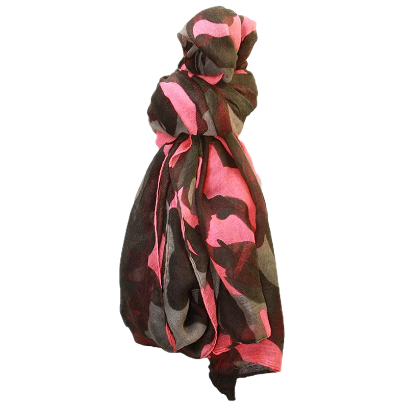 • Chèche femme, imprimé militaire et rose.