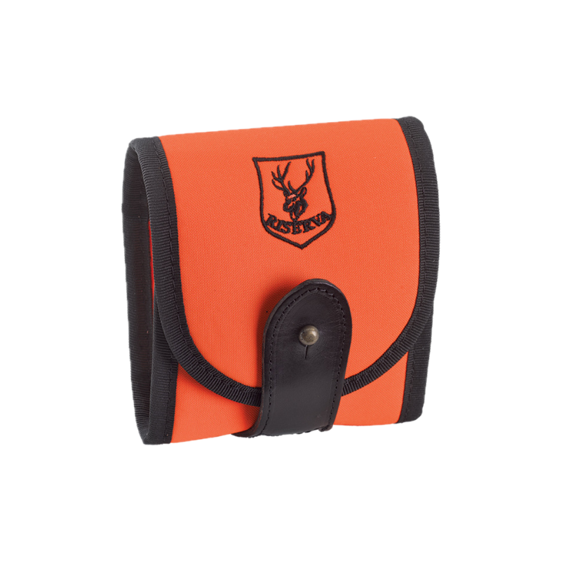 Pochette à balles multicalibre en nylon orange fluo haute visibilité, 7 tubes, fermée sur les côtés et fermeture silencieuse en cuir noir. Broderie: Logo Riserva