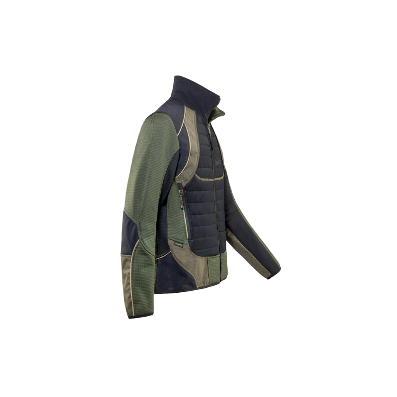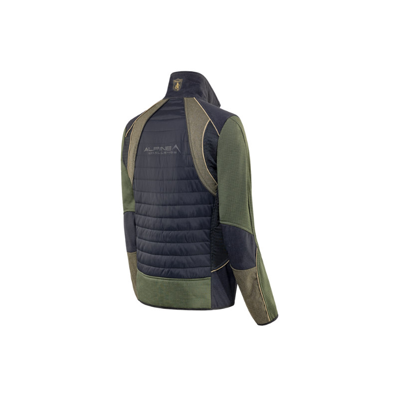 Ne l’appelez pas polaire, ne l’appelez pas duvet, c’est simplement ECLISPE. Cette veste hybride représente le compromis parfait entre chaleur, praticité et encombrement, pour le chasseur de montagne qui a besoin d’un produit polyvalent capable de s’adapter à l’extrême variabilité météorologique en montagne. Chaud et compressible, ECLIPSE fait du body-mapping son atout majeur. Le rembourrage en ouate PRIMALOFT® protège du froid les parties centrales du corps et le dos, tandis que les manches en polaire avec une structure en grille garantissent une plus grande liberté de mouvement et une meilleure respirabilité, tout en réduisant le poids et le volume. L’insert sous les bras et sur les hanches en POLARTEC® POWER AIR™ (100% recyclé) est hautement respirant et thermique: à l’intérieur de chaque cellule, un fil de polyester est encapsulé pour créer une poche d’air qui agit comme isolant. Le résultat est un tissu doux au toucher avec d’excellentes propriétés isolantes par rapport à un volume réduit et une grande élasticité. Les renforts typiques de la gamme ALPINE CHALLENGE en tissu TITANIAL sur les épaules et les hanches protègent le vêtement contre l’abrasion des sacs à dos. Enfin, deux grandes poches frontales complètent l’équipement.